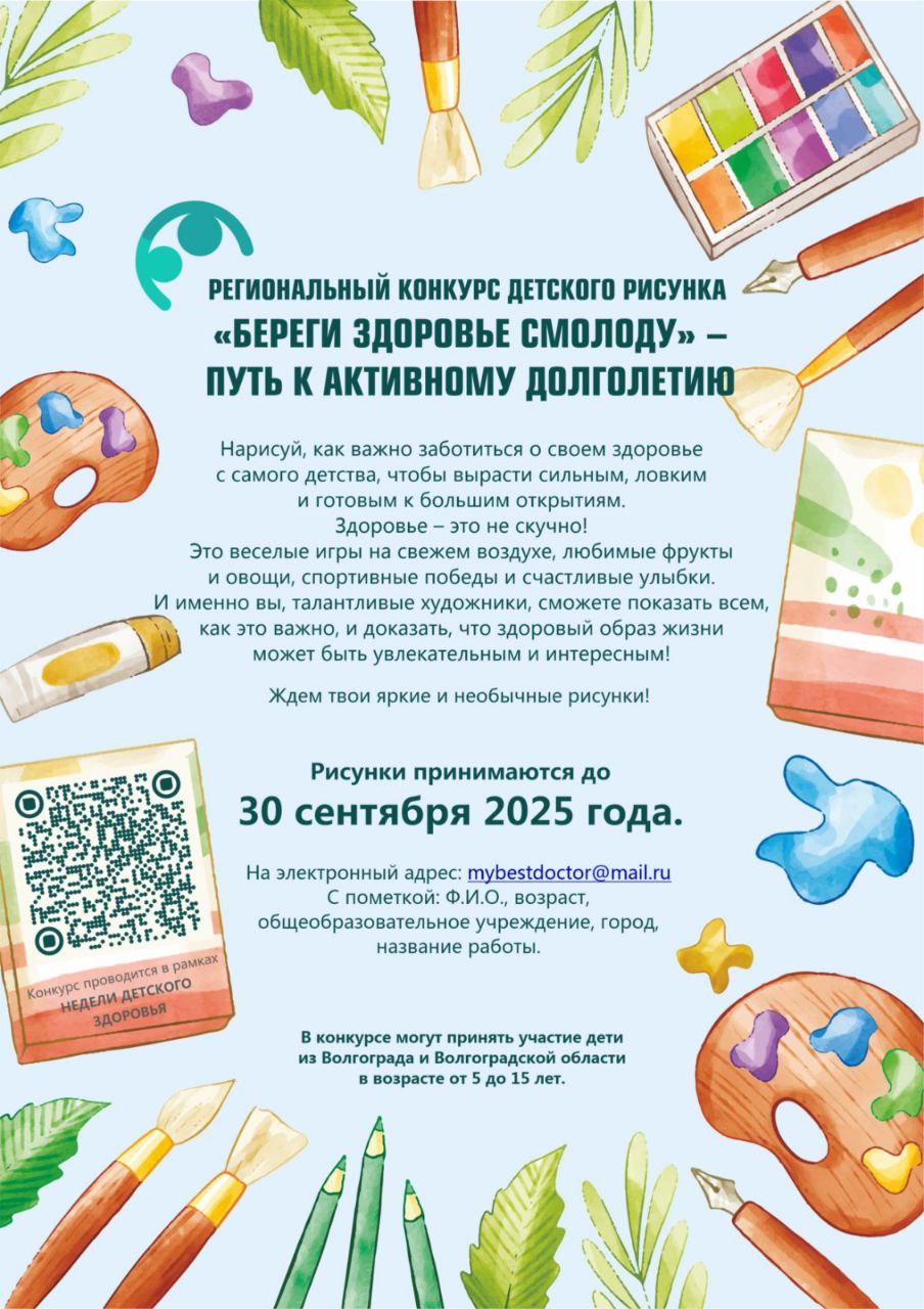 Рисунки принимаются до 30 сентября 2025 года на электронный адрес: mybestdoctor@mail.ru с пометкой: ФИО, возраст, общеобразовательное учреждение, название работы.